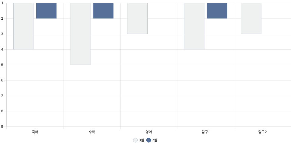 영어 | 3등급 | 3등급 | 2등급 | 2등급 | 1등급 | ▲ 2등급 상승 |